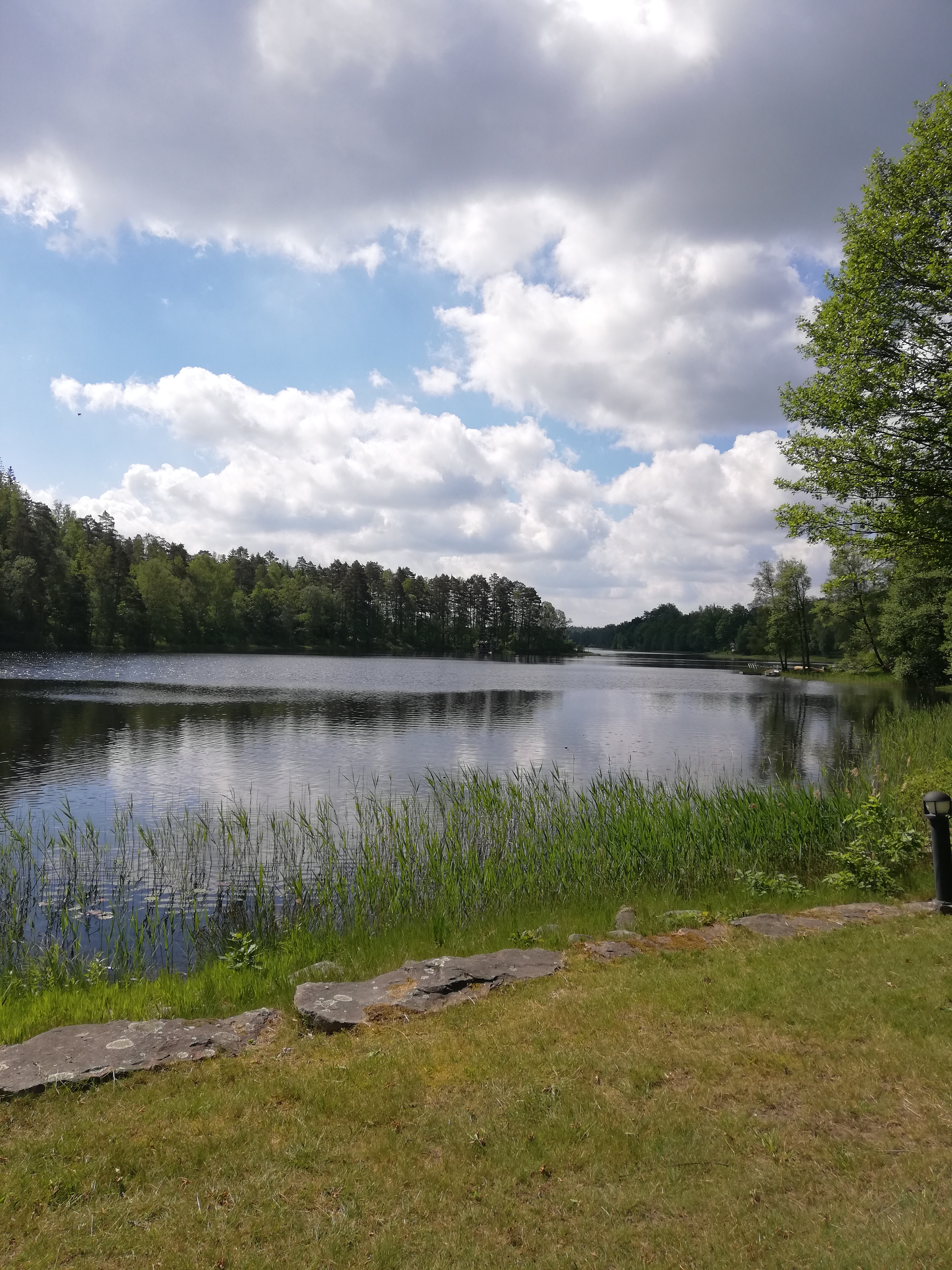 Samhället ligger i en naturskön miljö vid sjön Hallången.
